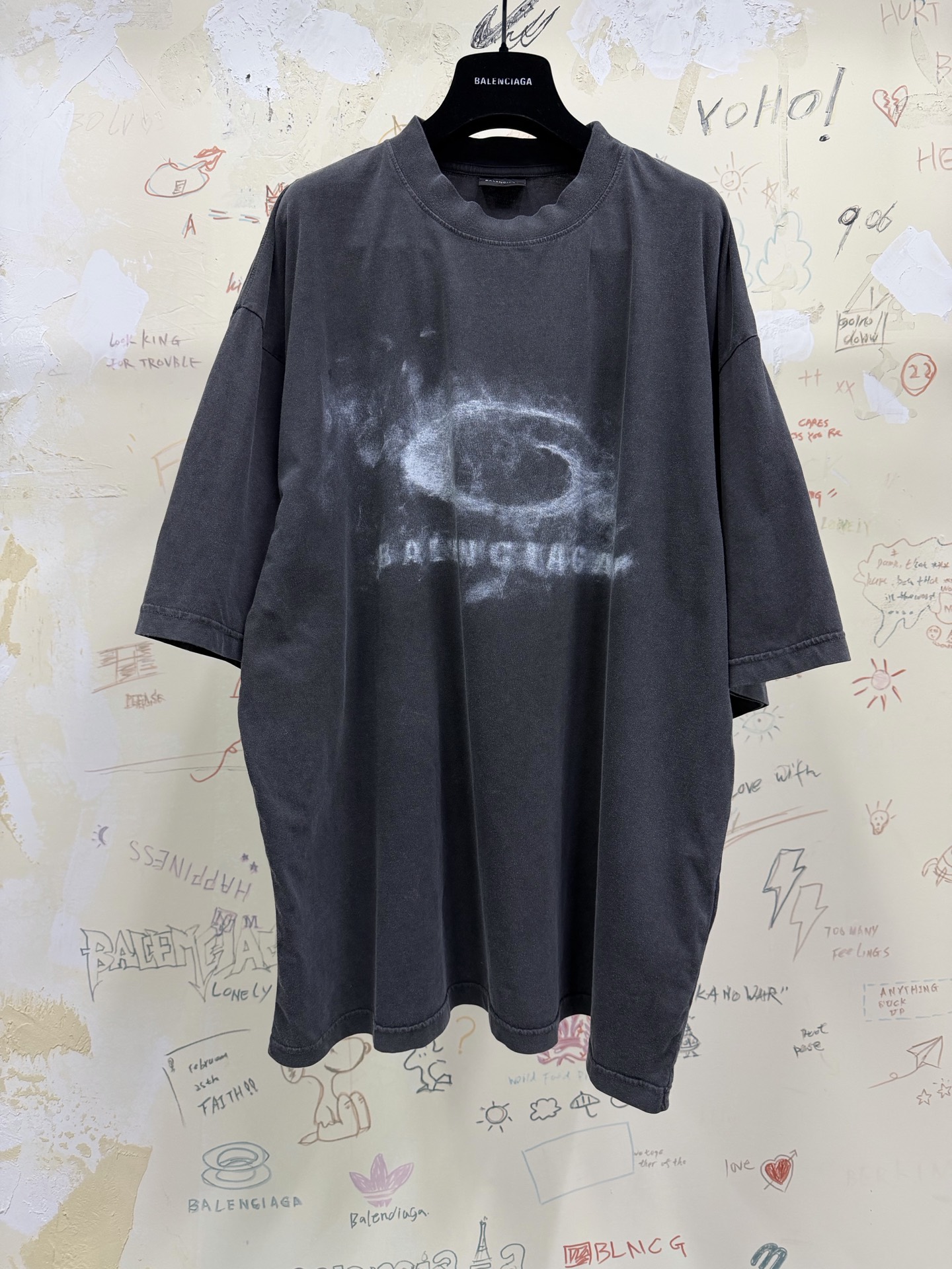 제품명 : 발렌시아가 루프 스포츠 그래픽 워시드 블랙 티셔츠