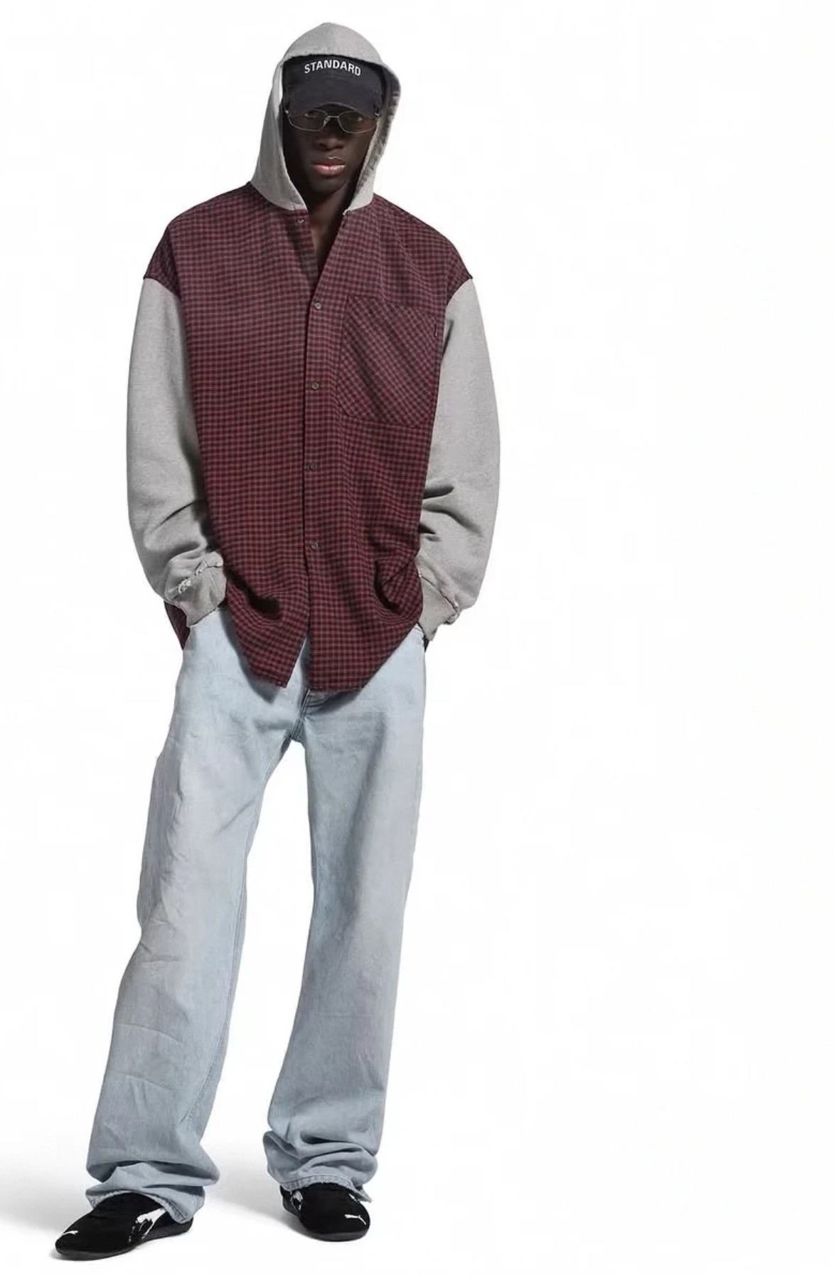 제품명 : 발렌시아가 하이브리드 체크 레드 그레이 셔츠 후드