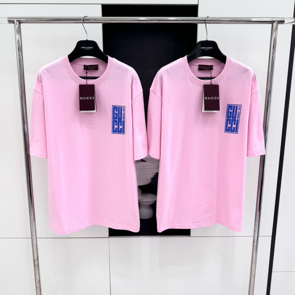 [V공장] 구찌 로고 디테일 핑크 티셔츠