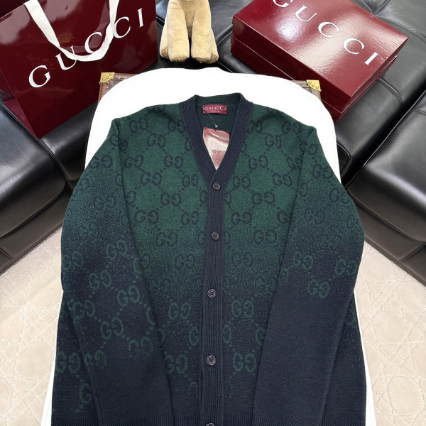 [V공장] 구찌 GG 그라데이션 자카드 그린 울 가디건