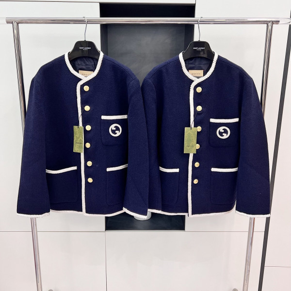 [V공장] 구찌 인터로킹G 트위드 엠브로이더 네이비 자켓
