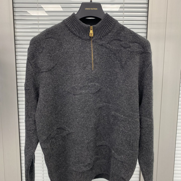 [TJ공장] 루이비통 모노그램 자카드 그레이 반집업 울 니트 스웨터