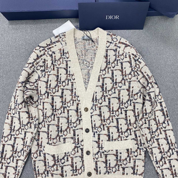 [TJ공장] 디올 오블리크 패턴 베이지 자카드 울 가디건