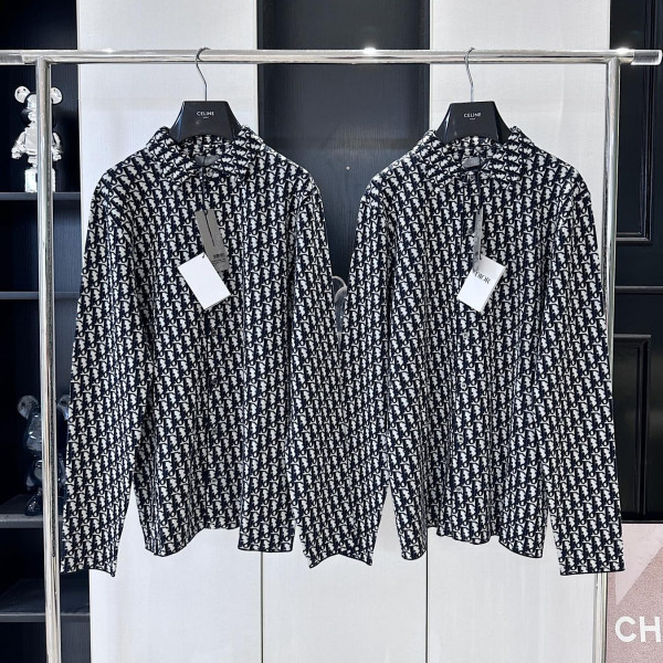 [V공장] 디올 오블리크 패턴 블랙 니트 셔츠