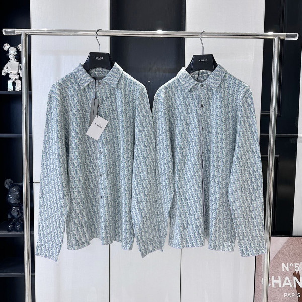 [V공장] 디올 오블리크 패턴 스카이 블루 니트 셔츠