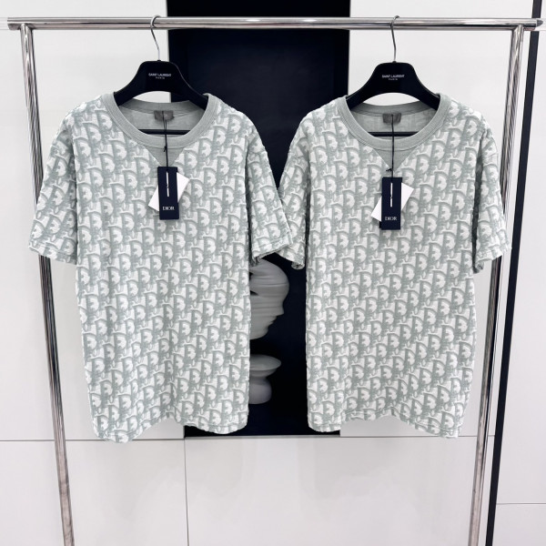 [V공장] 디올 오블리크 패턴 그린 화이트 티셔츠