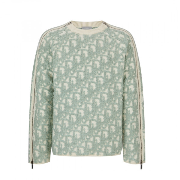 [잔디집] 디올 오블리크 패턴 울 코튼 블렌드 자카드 화이트 그린 니트 스웨터