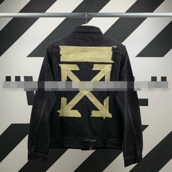 [페이크랩] 오프화이트 테이프 에로우 블랙 데님 자켓