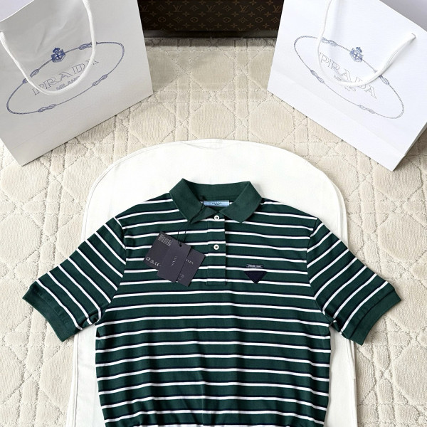 [V공장] 프라다 삼각로고 스트라이프 크롭 그린 폴로티 여성복