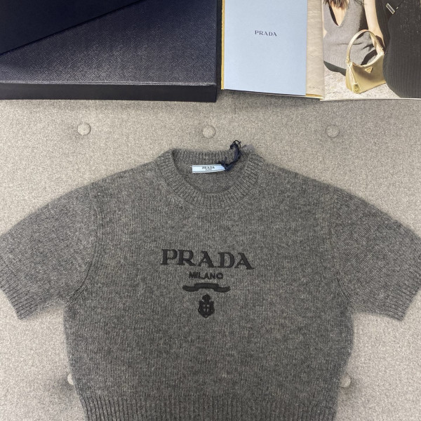 [TJ공장] 프라다 밀라노 그레이 울 캐시미어 반팔 니트 스웨터 여성복
