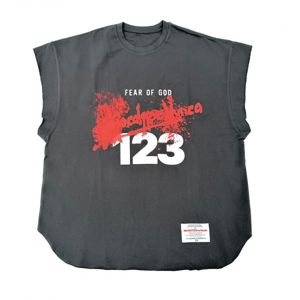 [세나] 피어오브갓 X RRR123 아포칼립스 눈카 컷 워시드 블랙 민소매 티셔츠