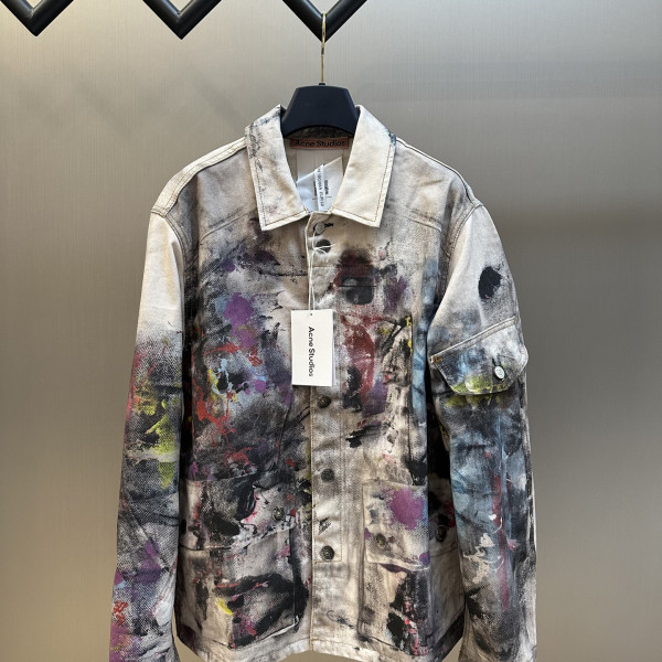 아크네 스튜디오 트롱프뢰유 프린팅 워시드 그레이 데님 자켓