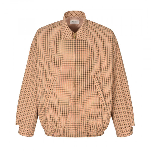 [잔디집] 미우미우 체크 캔버스 베이지 블루종 자켓