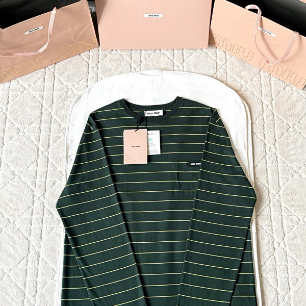 [V공장] 미우미우 로고 스트라이프 그린 롱 슬리브