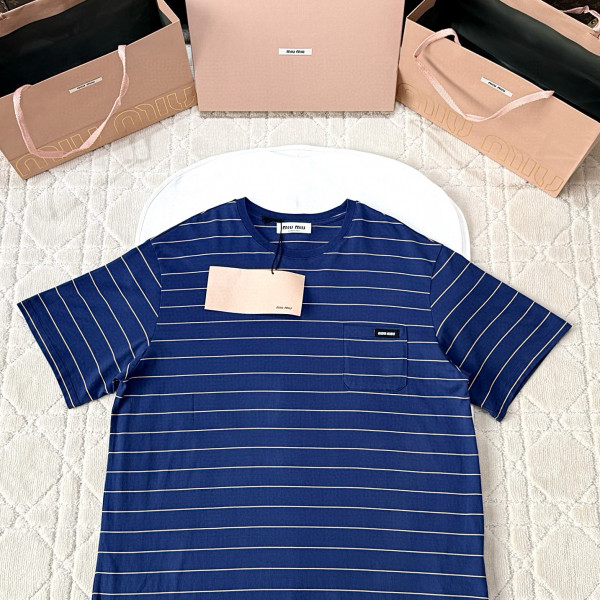 [V공장] 미우미우 로고 스트라이프 네이비 티셔츠