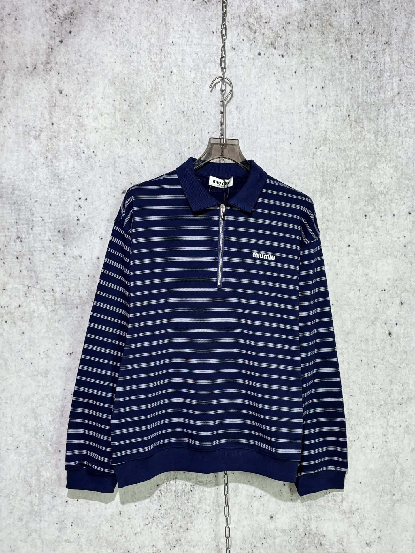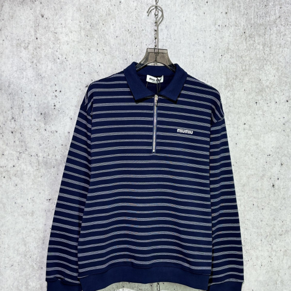 제품명 : [사슬공장] 미우미우 블루 스트라이프 반집업 긴팔 폴로티