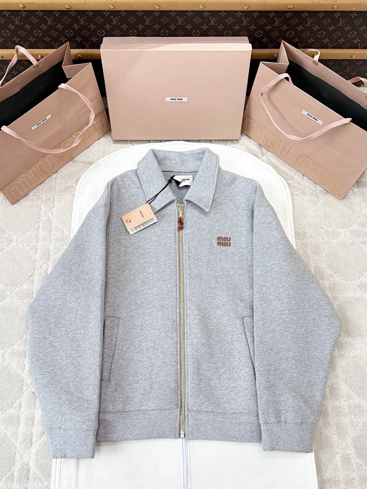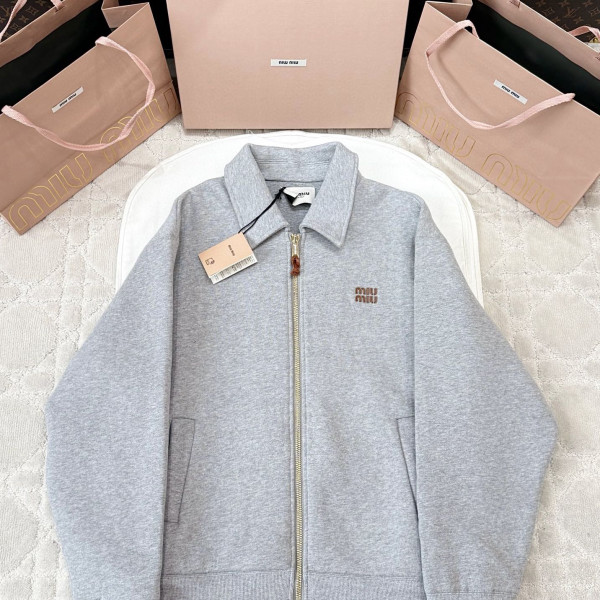 제품명 : 미우미우 로고 그레이 저지 블루종 자켓