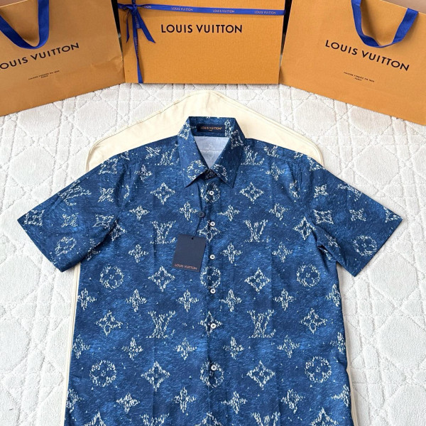 [V공장] 루이비통 모노그램 프린팅 블루 반팔 셔츠