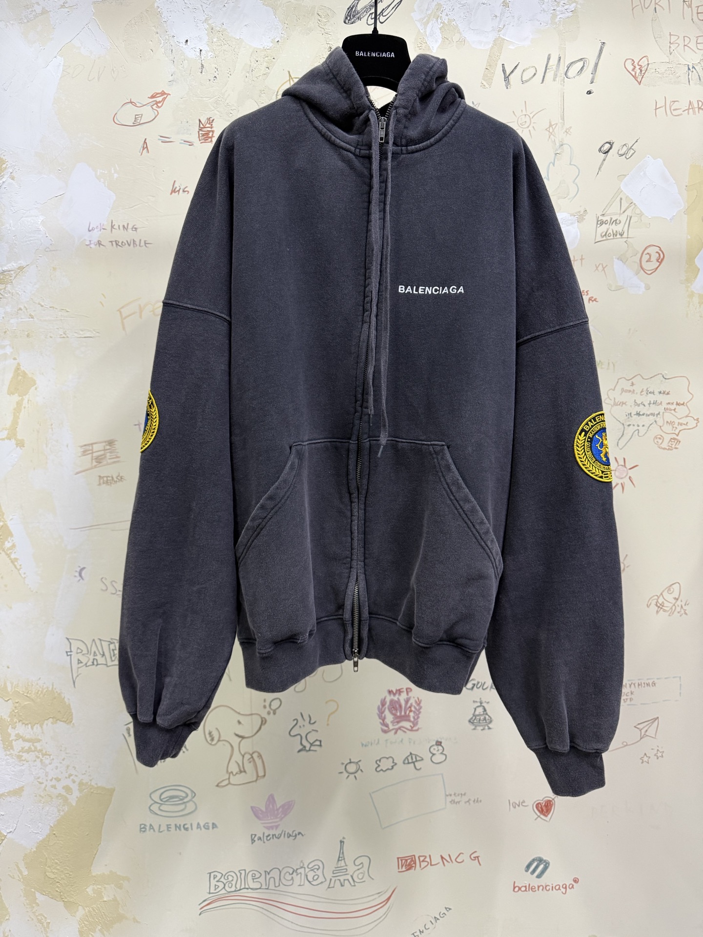 제품명 : 발렌시아가 유니폼 패치 블랙 후드집업