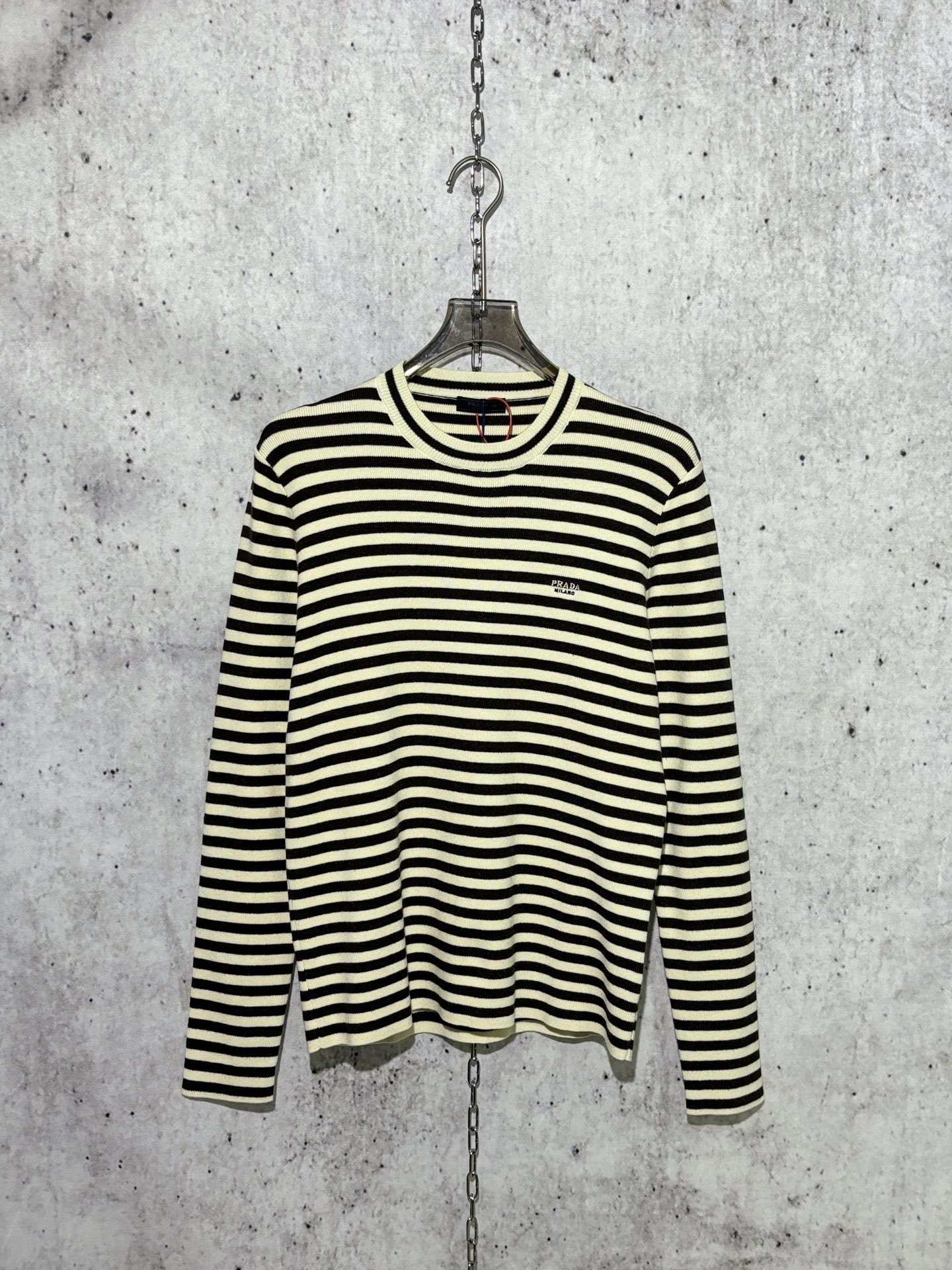 제품명 : [사슬공장] 프라다 스트라이프 크림 화이트 울 니트 스웨터