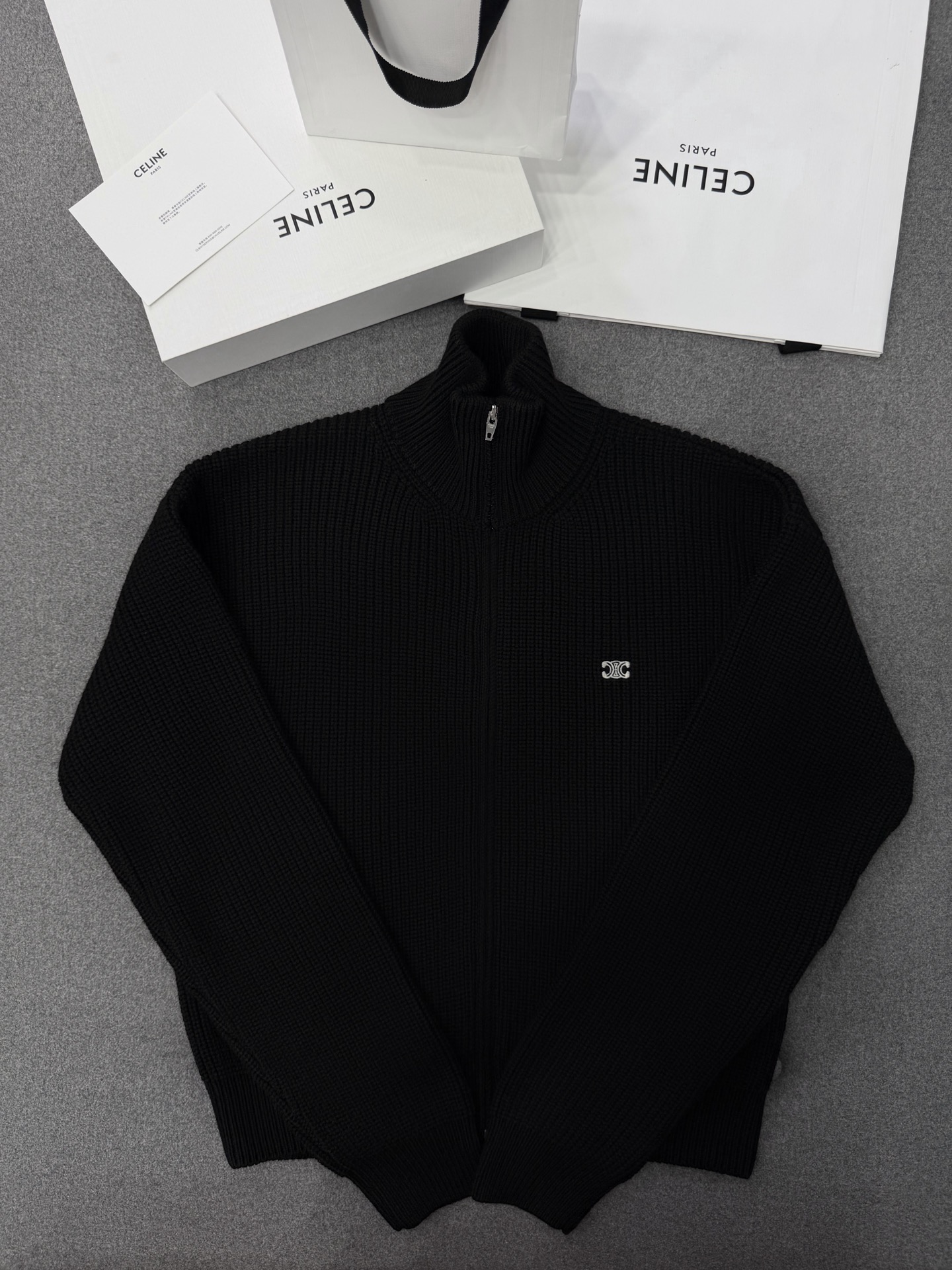 zb153[TJ공장] 셀린느 트리오페 트러커 블랙 집업 니트 스웨터.jpg