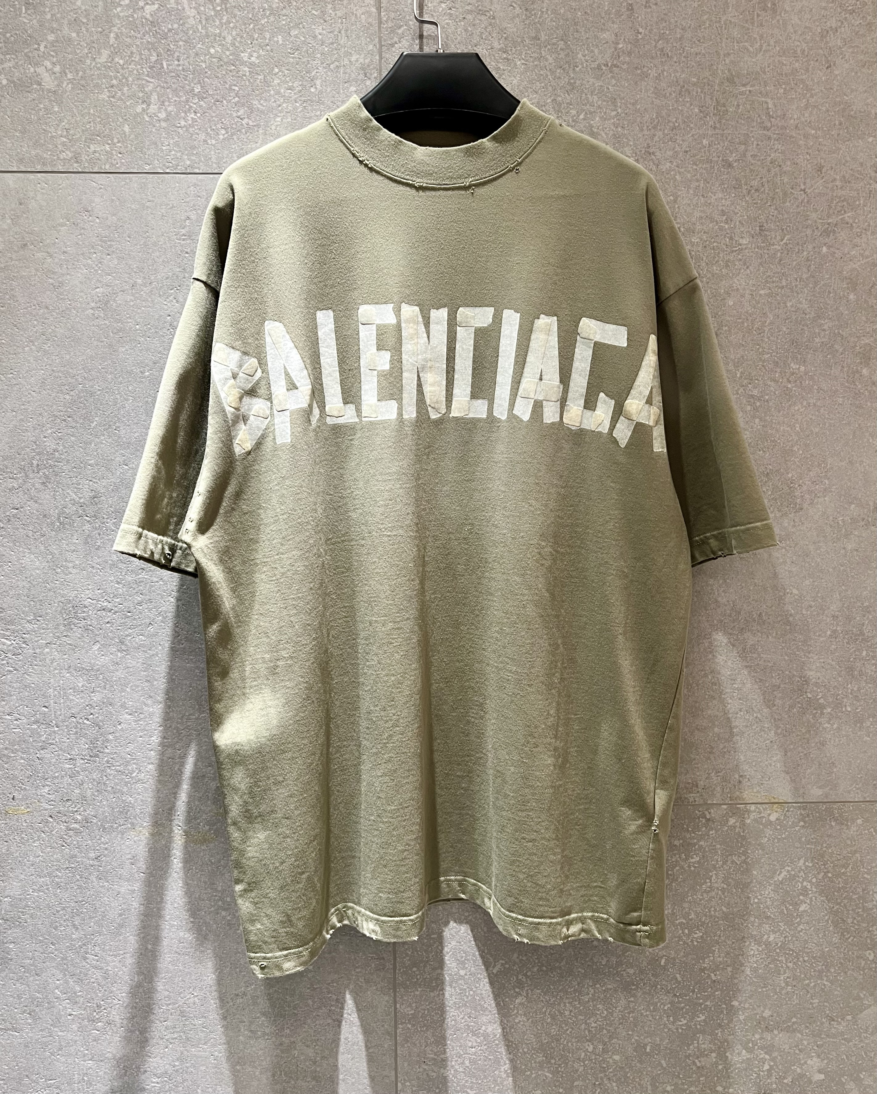 [계단] 발렌시아가 테이프 타잎 카키 그린 티셔츠
