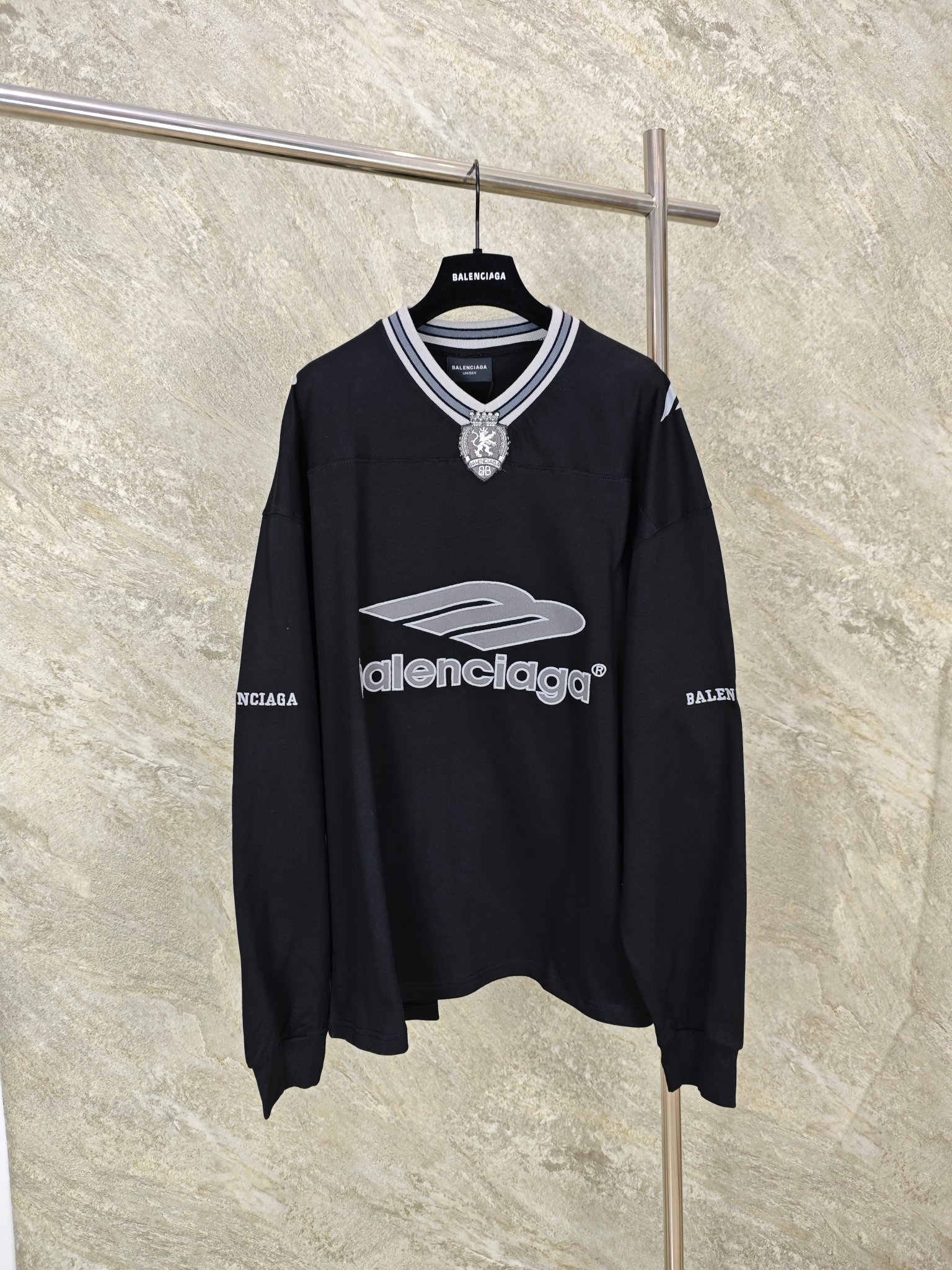 [GTR공장] 발렌시아가 3B 풋볼 V넥 블랙 롱 슬리브