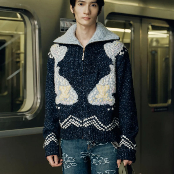 제품명 : [사슬공장] 루이비통 X 니고 딥 네이비 니트 집업 자켓