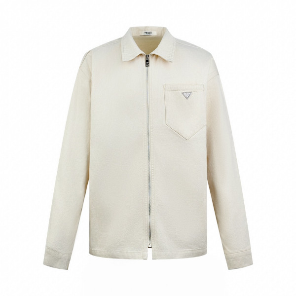 [잔디집] 프라다 삼각로고 포켓 크림 데님 셔츠 자켓