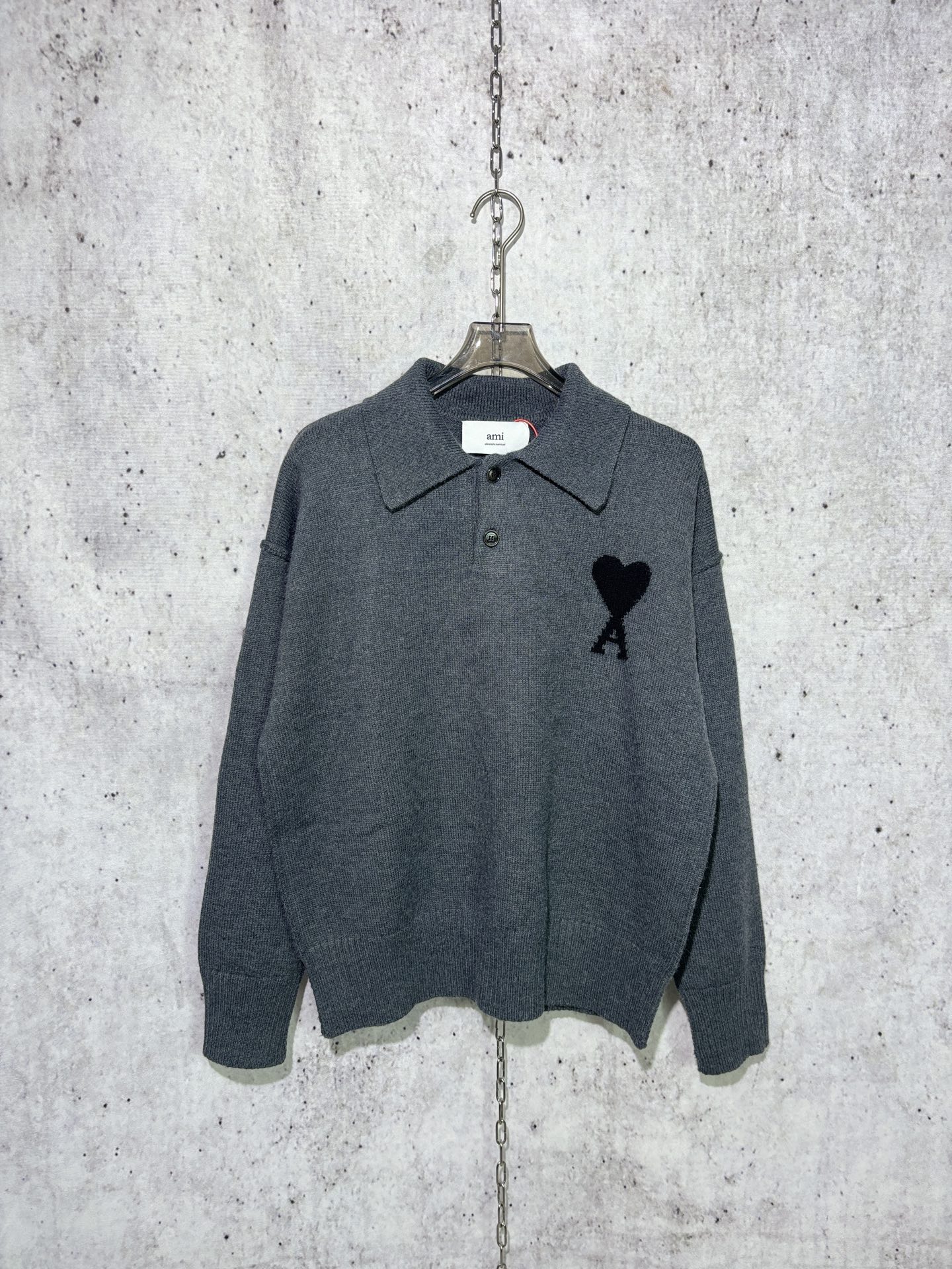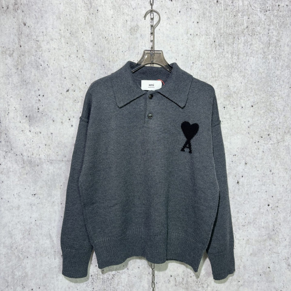 제품명 : [사슬공장] 아미 하트 로고 헤더 그레이 울 긴팔 폴로티