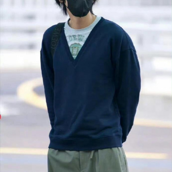 제품명 : [사슬공장] 로에베 V넥 레이어드 블루 맨투맨