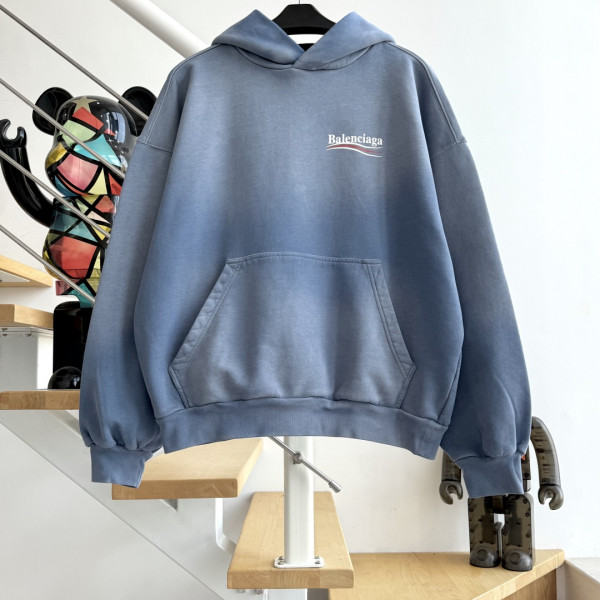 [계단] 발렌시아가 웨이브 로고 워시드 블루 후드