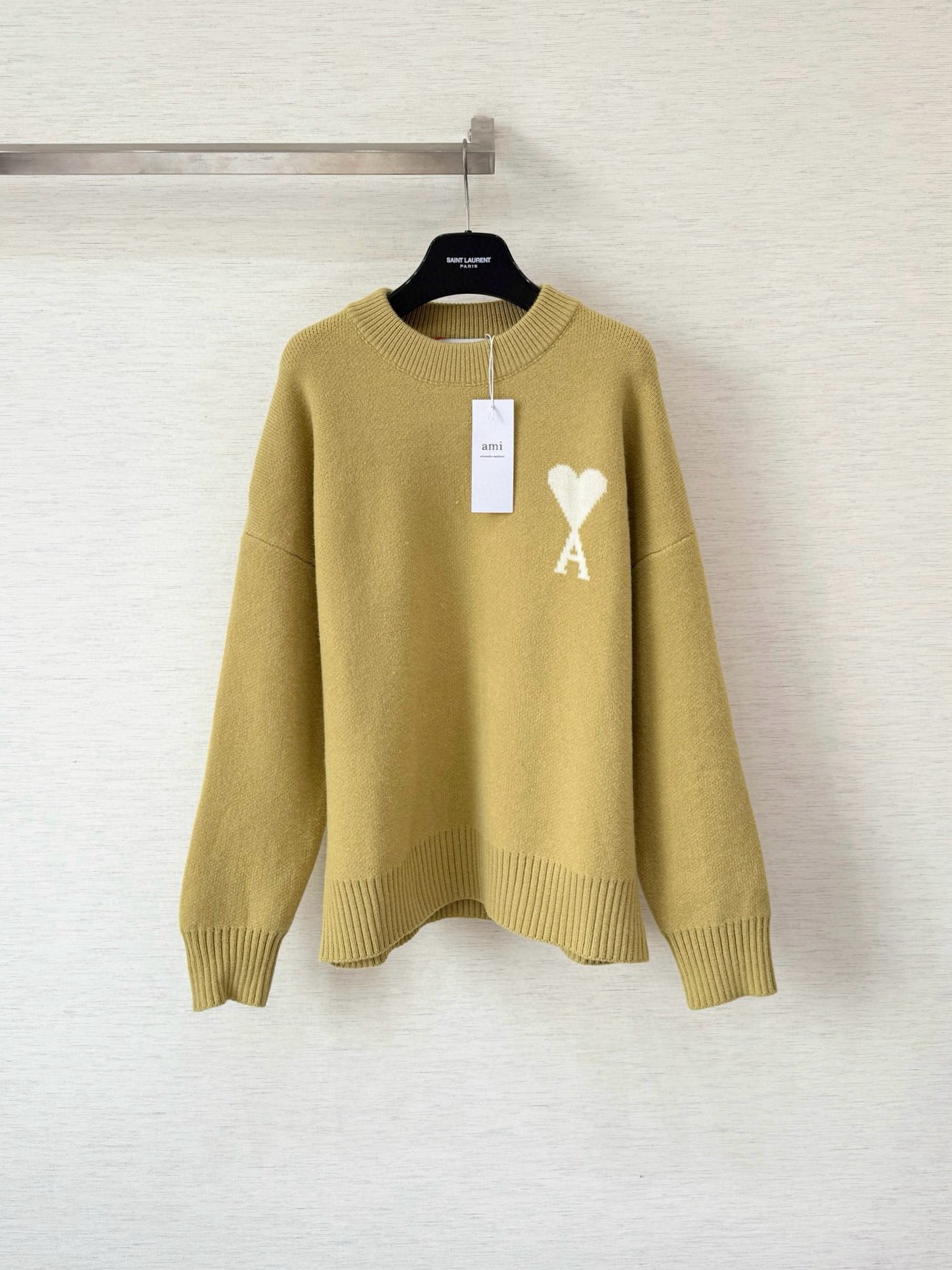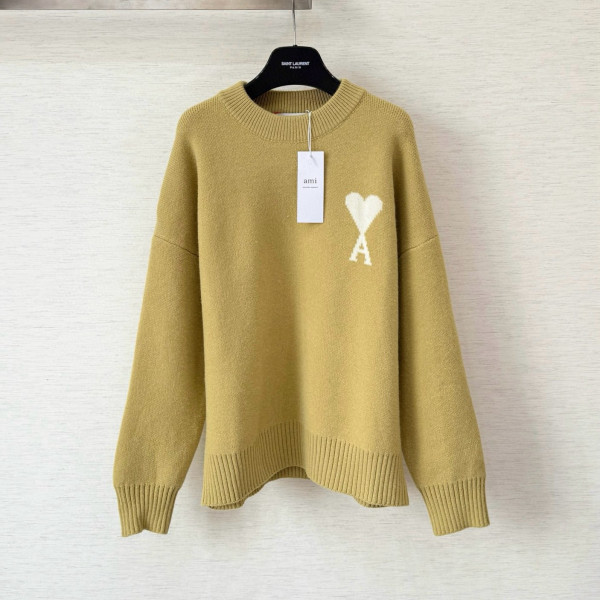 제품명 : 아미 빅 하트 로고 라임 그린 메리노 울 니트 스웨터