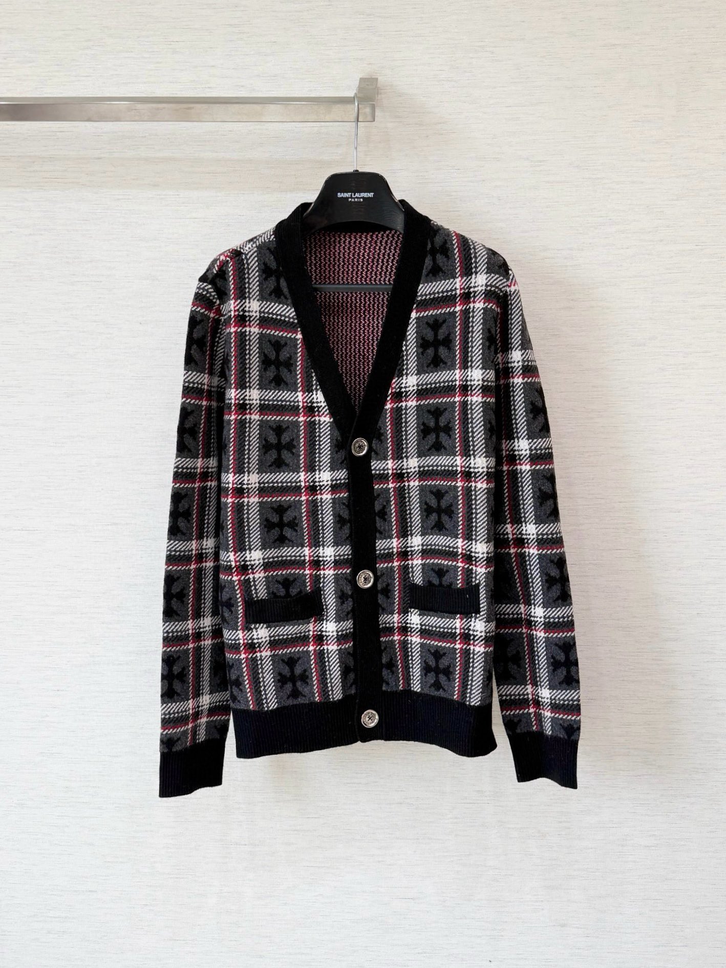 제품명 : 크롬하츠 체크 크로스 블랙 레드 가디건