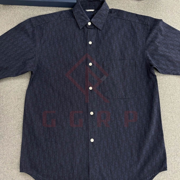 [TJ공장] 디올 오블리크 패턴 컴포터블 데님 네이비 반팔 셔츠