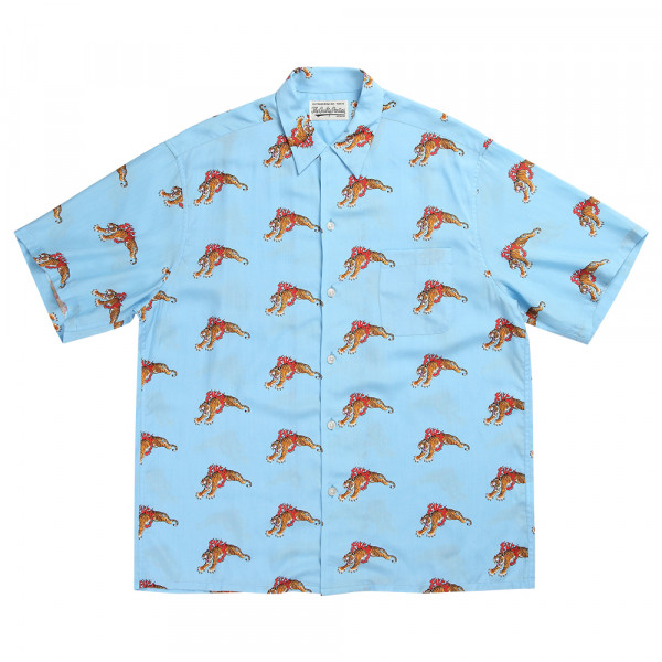 [세나] 와코 마리아 X 팀 레이 스카이 블루 하와이안 반팔 셔츠