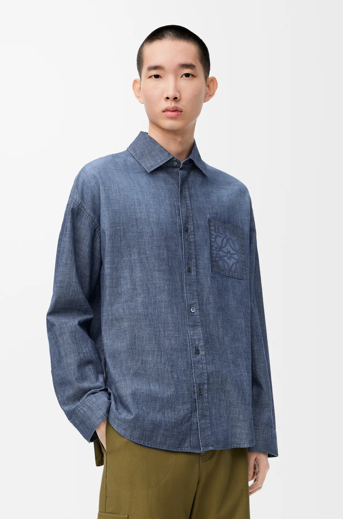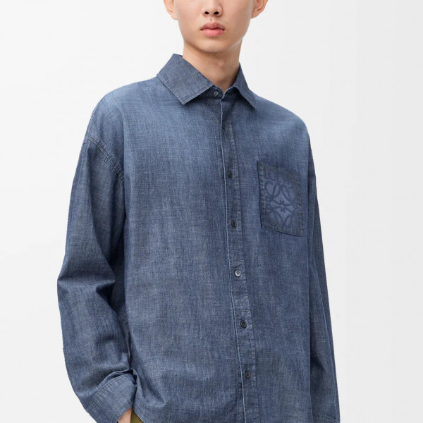 [잔디집] 로에베 코튼 포켓 로고 워시드 블루 셔츠