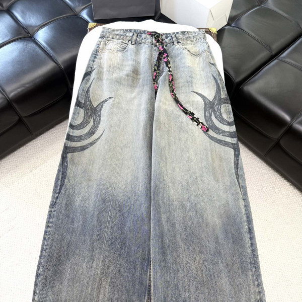 [V공장] 발렌시아가 Y2K 스트레치드 블루 배기 데님 진