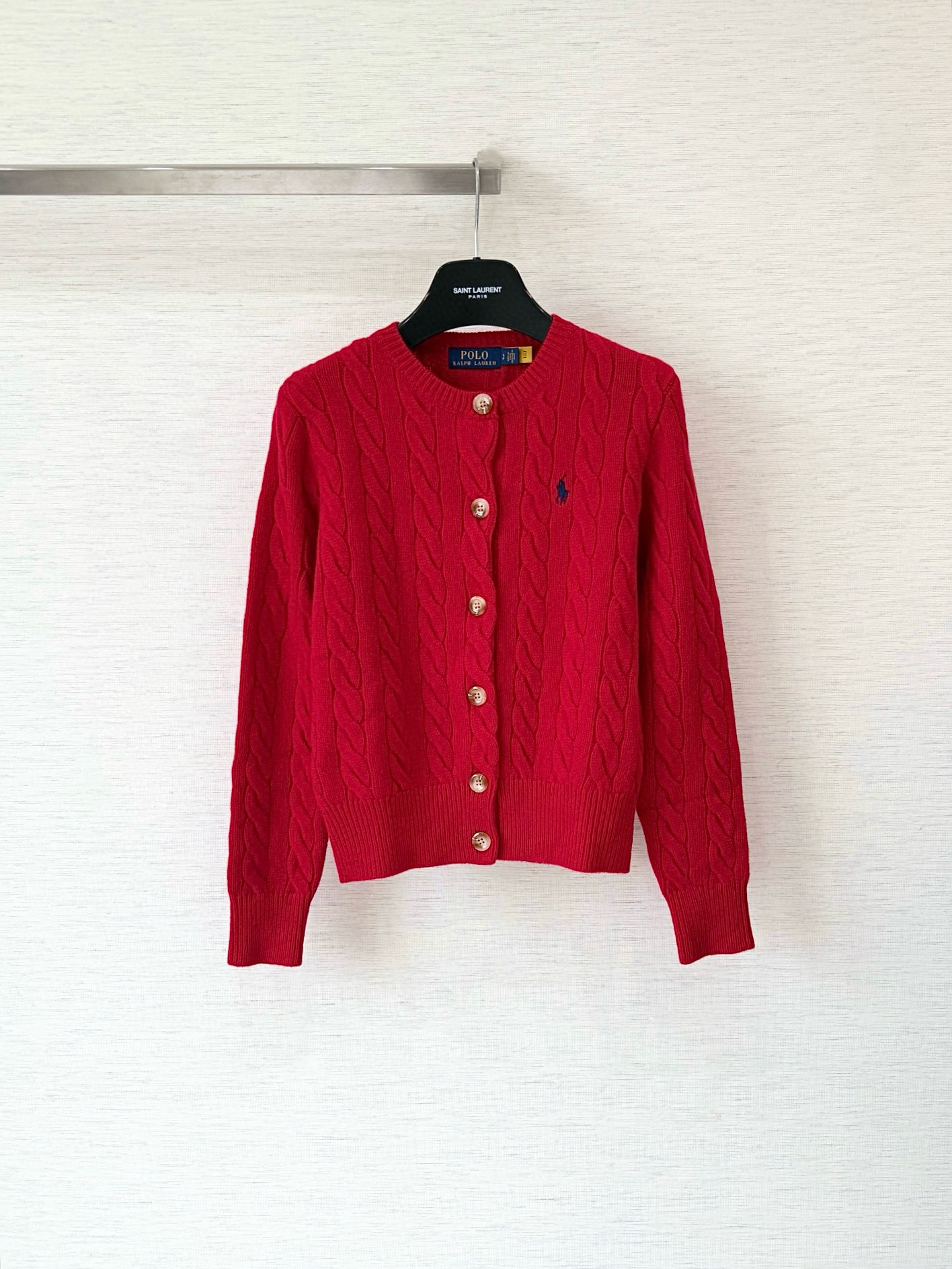 제품명 : 폴로 랄프로렌 케이블 레드 울 캐시미어 니트 가디건 여성복