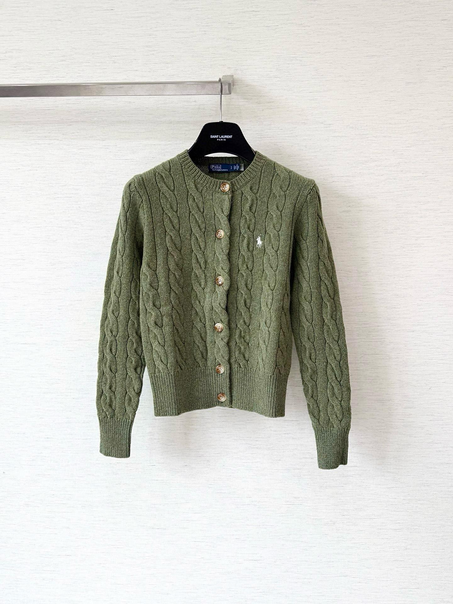 zb475폴로 랄프로렌 케이블 그린 울 캐시미어 니트 가디건 여성복.jpg
