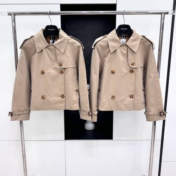 [V공장] 버버리 개버딘 베이지 코튼 크롭 트렌치 코트 여성복
