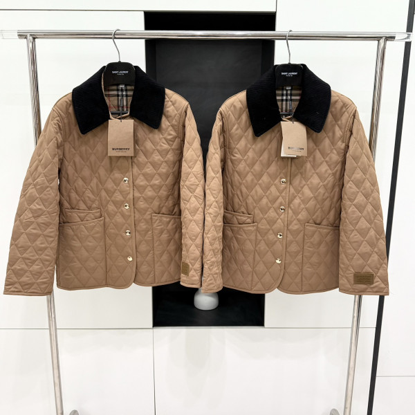 [V공장] 버버리 코듀로이 다이아몬드 퀄팅 카멜 자켓 여성복