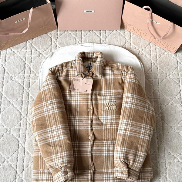 [V공장] 미우미우 체크 플래드 베이지 다운 자켓 여성복