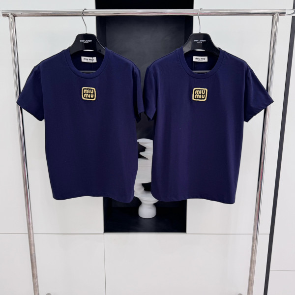 [V공장] 미우미우 아플리케 크롭 네이비 티셔츠 여성복