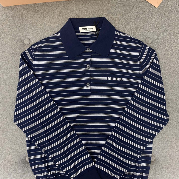 [TJ공장] 미우미우 로고 스트라이프 네이비 긴팔 폴로티 여성복
