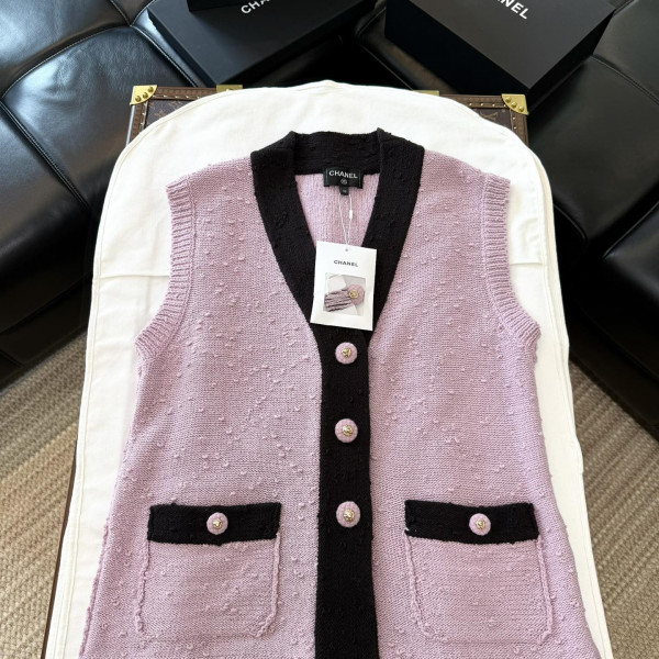 [V공장] 샤넬 라이트 핑크 울 민소매 티셔츠 여성복