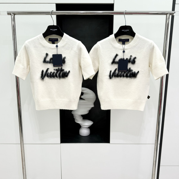 [V공장] 루이비통 LV시그니처 브러시드 화이트 반팔 니트 스웨터 여성복