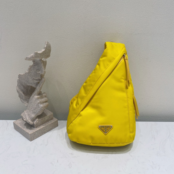 [블랙 프레임] 프라다 남여공용 리나일론 레더 숄더 옐로우 스트랩 백팩 2VZ092
