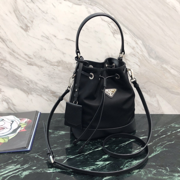[블랙 프레임] 프라다 사피아노 레더 블랙 버킷백 1BE055