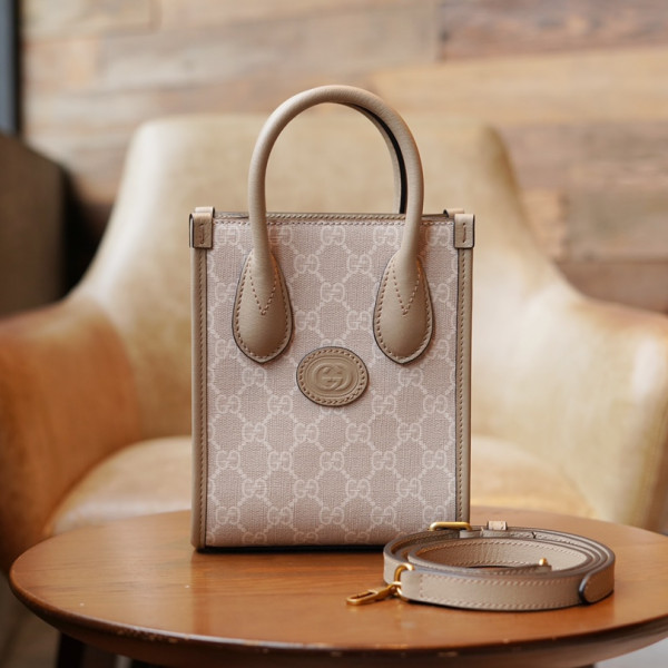 [콜라샵] 구찌 인터로킹G 수프림 베이지 화이트 미니 토트백 671623